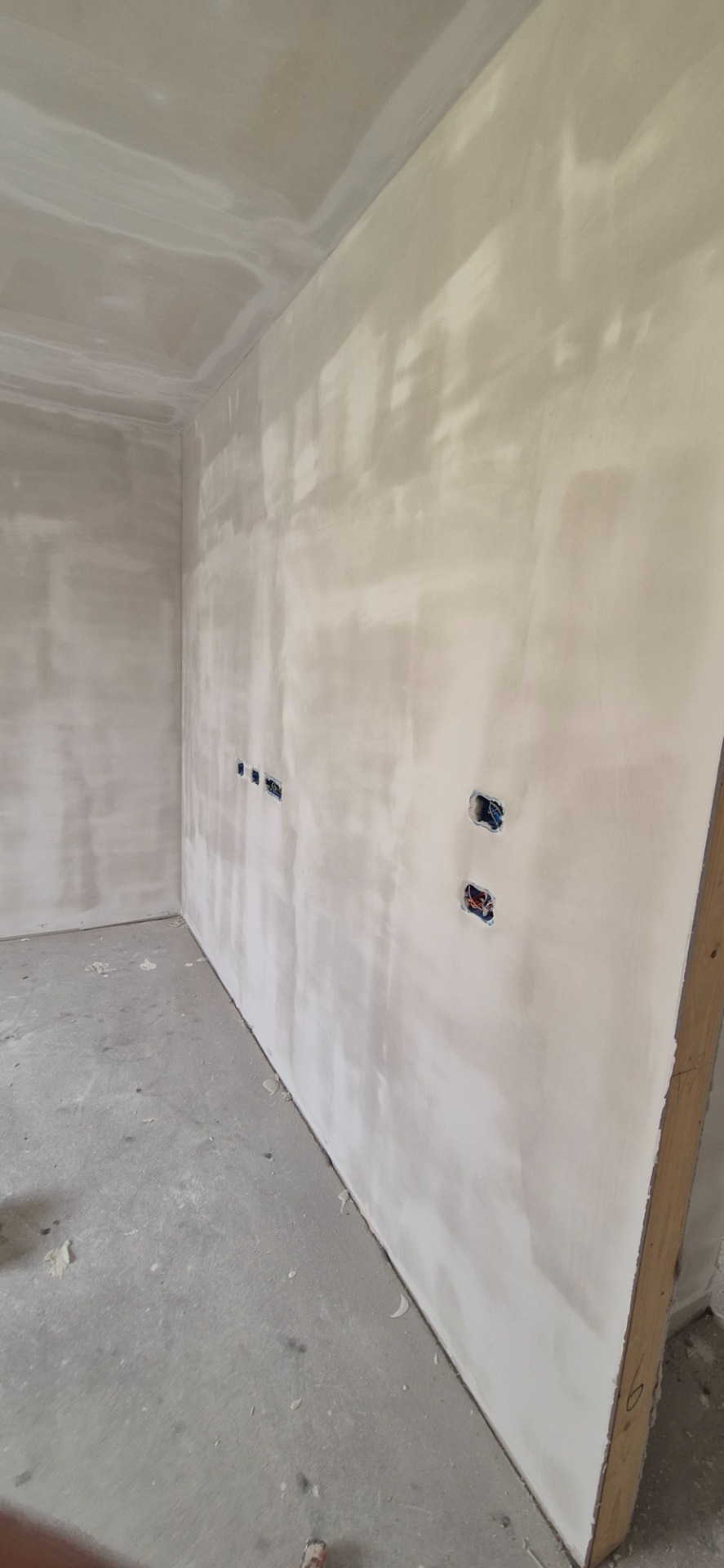 Rasatura completa con carteggiatura finale fine, superficie pronta alla tinteggiatura.